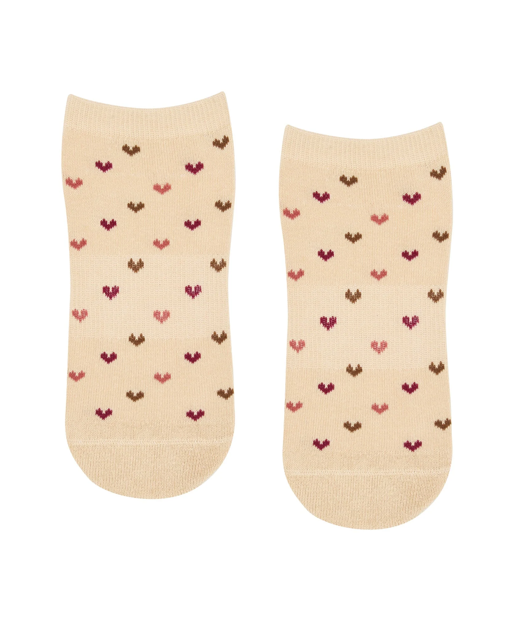 Low Rise Grip Socks - Hearts Aflutter Beige